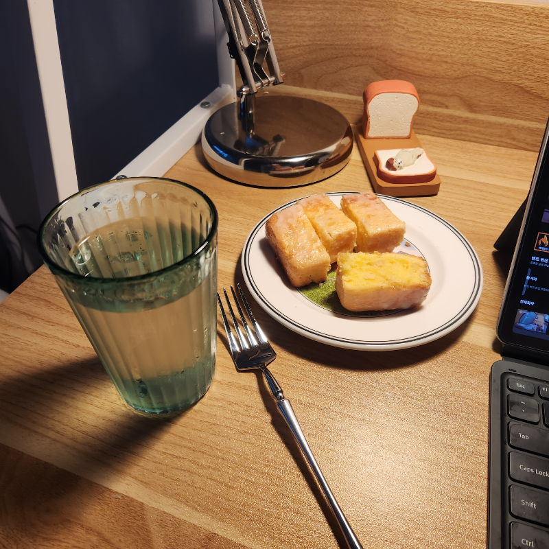 저녁으로 야채 넣은 칼국수 한 그릇 먹고, 포스팅하다 보니 허전해서 아이싱 뿌려서 1개 담았습니다. 디저트로 딱 1개 적당해서 무척 마음에 듭니다. 큰 틀에 구우면 팬닝 할 땐 쉽지만, 잘라먹을 때 부스러기도 싫단 말이죠...