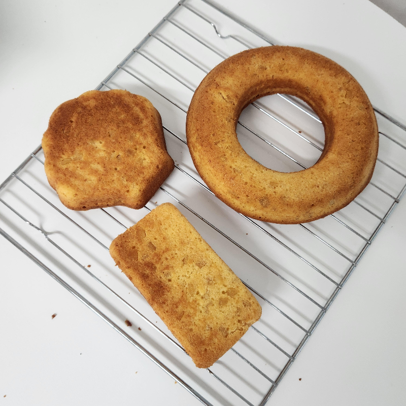 파운드케이크는 뒤집는데 살짝 붙어서 실리콘 주걱으로 옆면을 떨어트려주고 뒤집으니 성공적으로 나왔습니다.