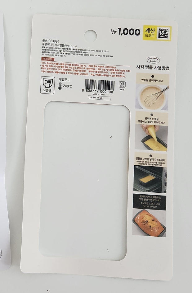 가격은 틀 하나당 1,000원~ 가격 너무 사랑스럽지 않나요?ㅋㅋ 은근 다이소 틀 괜찮아서 사서 흠집 왕창 날 때까지 쓰는 편입니다. 가격에서 유추할 수 있다시피 제조는 MADE IN CHINA입니다.