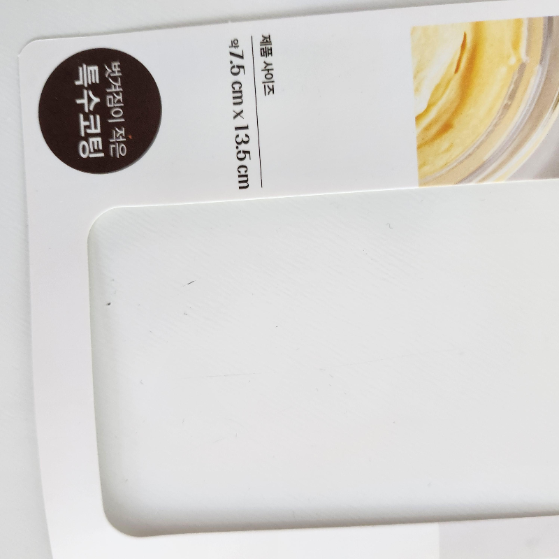 벗겨짐이 적은 특수코팅! 이라고 하나 쇠로 된 조리도구로 긁으면 다 긁히니 조심하세요.... 는 다른 다이소 틀 써보면서 깨달은 점입니다 ㅋㅋ 근데 그건 비싼 거 사도 다 똑같으니까요~ 특히 스패츌러 무의식에 많이 쓰시는데 조심하세요... 실리콘 주걱 사용을 추천드립니다.
