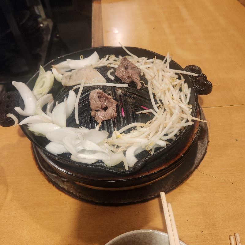 저는 징기즈칸 1200엔 1인분 먹고(진짜 양이 적으니 2인분으로 예산 잡아가시는 것 추천드립니다), 궁금했던 양고기교자를 추가로 시켜봤는데 특색 있는 맛이어서 잘 먹었습니다. 담에 다른 맛의 교자가 궁금해서 또 갈지도요?