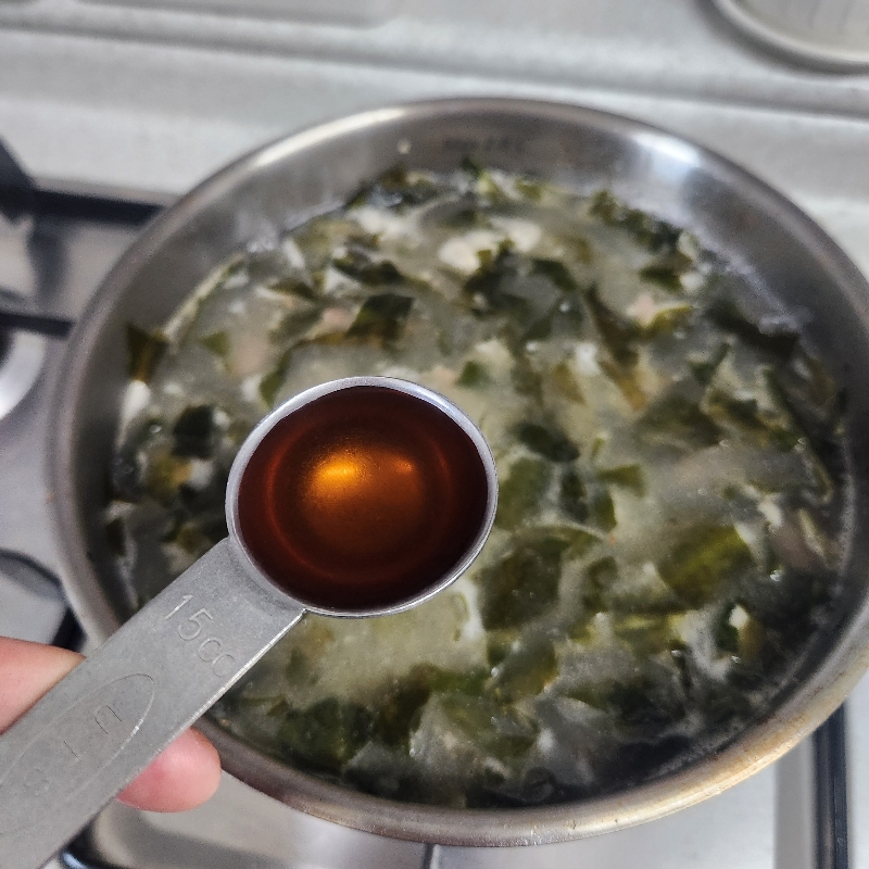 12. 참치액을 1T 넣어줍니다. 코인육수도, 참치액도 감칠맛 뿐만 아니라 짠 맛도 추가되므로 무작정 많이 넣는다고 되지 않습니다. 적정량 넣어야 합니다.