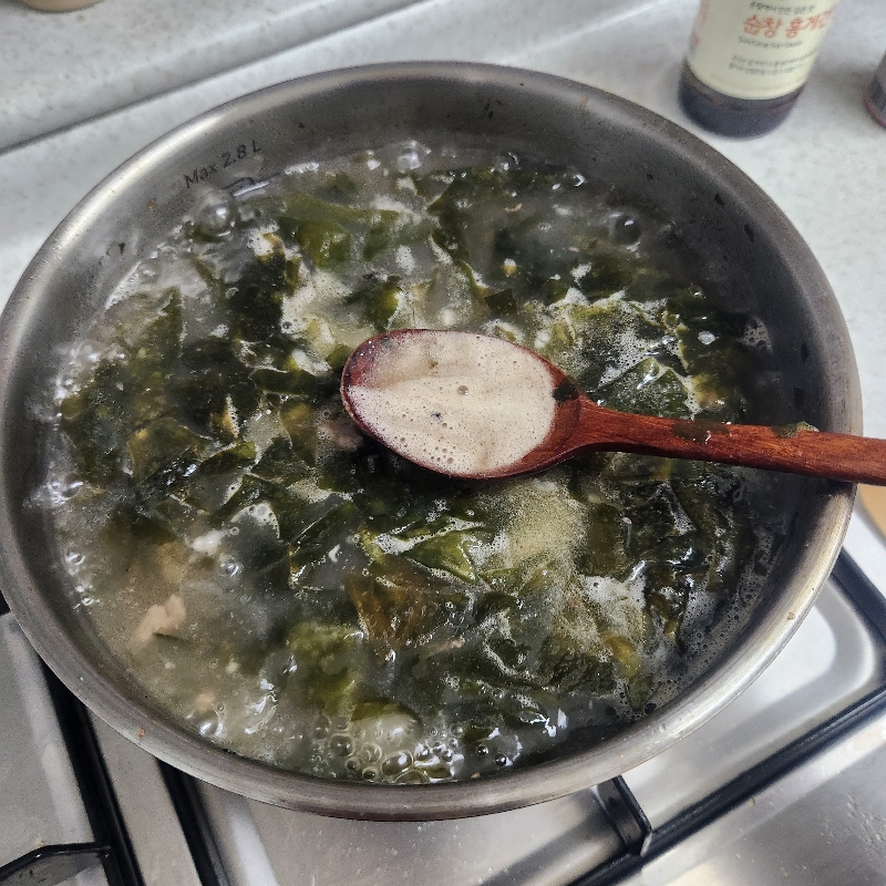 시판 마트 미역을 쓰신다면 마늘이나 매실주는 굳이 넣으실 필요 없습니다!! 비린내 나는 재료가 있으실 때 쓰시면 됩니다.