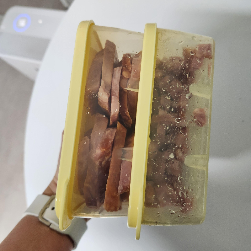 볶음밥용으로 일부 자르고, 나머지는 라면이나 토르티야와 함께 먹기 위해 그대로 통에 넣어 냉동시켜 주었습니다.