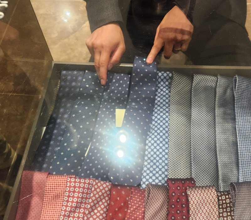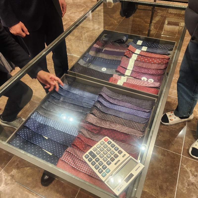 넥타이 빤짝거리는 거 넘모 예쁘지 않나요? 그리고 뒤늦게 깨달은 넥타이 가격... 14만 원이었군요 ㅋㅋㅋ 그리고 셔츠는 8-9만 원짜리 하나, 16-17만 원짜리 하나 보여주셨는데... 디자인은 동일하나, 천 재질이 얇고 두꺼운 느낌 차이가 나서 그냥 비싼 걸로 하자고 말씀드렸습니다.
