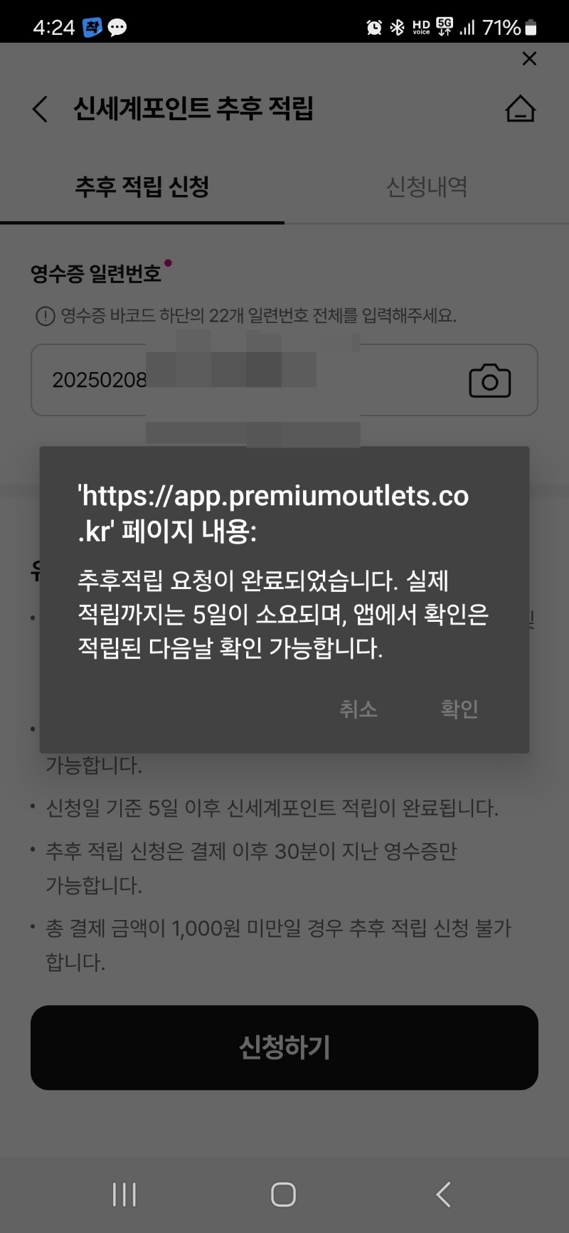 그때 커피영수증 버리지 말걸 그랬어하고 1초 잠깐 후회도 했지만, 적립이 엄청 크지는 않네요 ㅋㅋ 롯데랑 비슷한가 싶은...? 그래도 짠테크를 사랑하는 분들은 미리 신세계아울렛어플 깔고 회원가입하고 오세요!